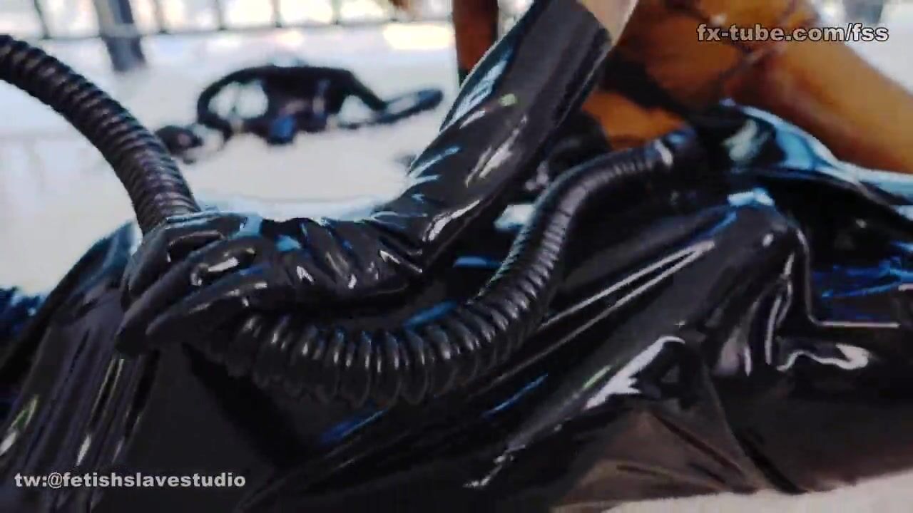 fx-tube com Latex lesbian mask and slleping bag trample
