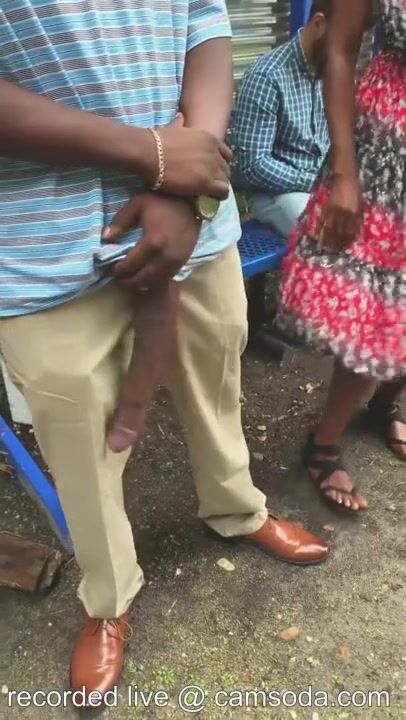 Huge! Big Black Dick Flash in Public Bus Stop