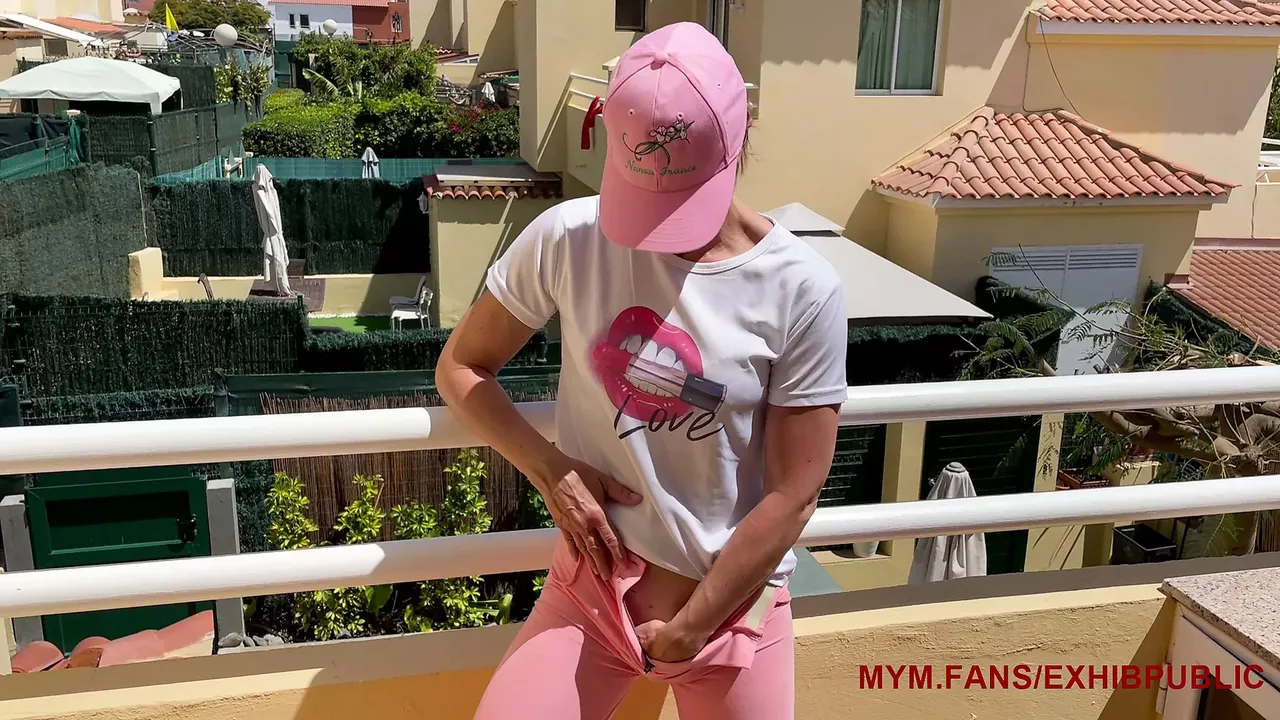 I caress myself in public on the balcony