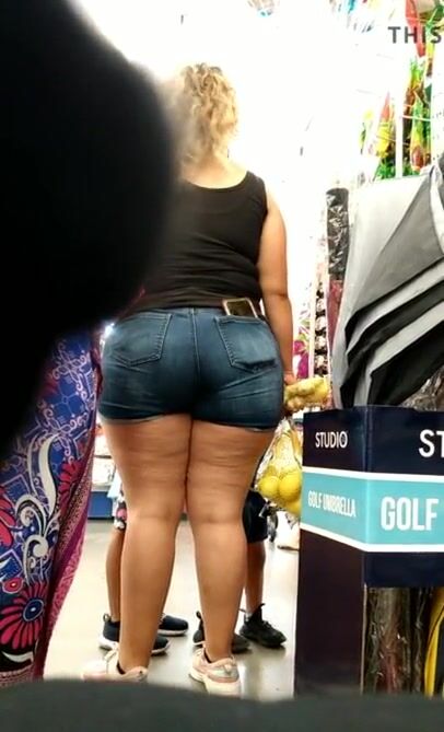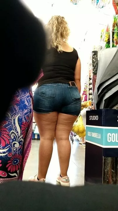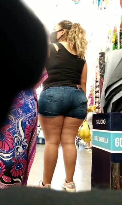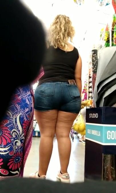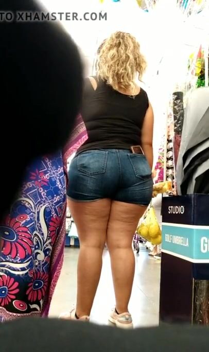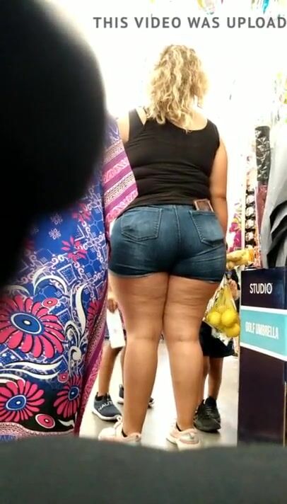 Mexican MILF thick ass and thighs in jeans VPL.
