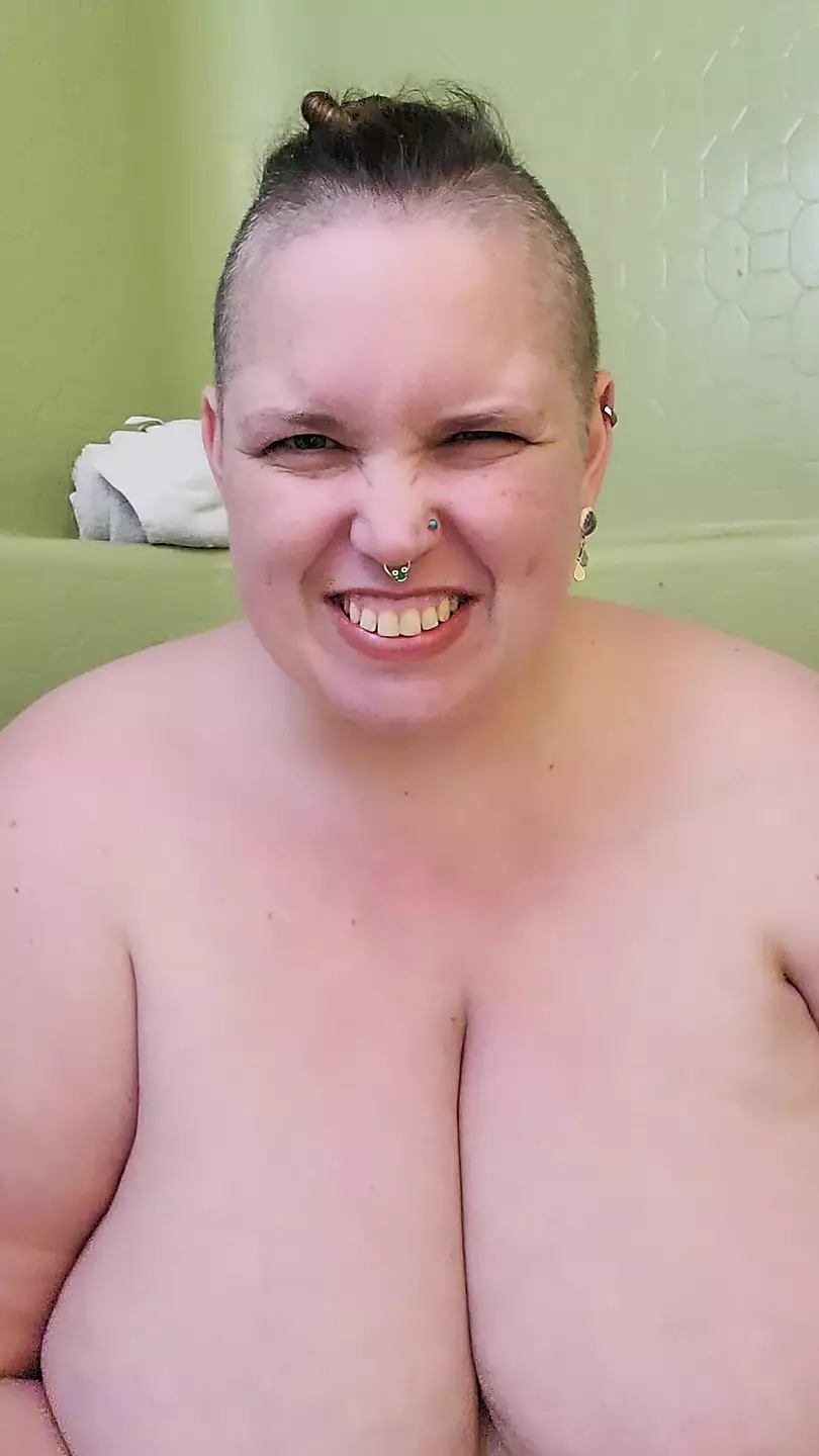 Peachesandstring soaps up her titties and plays with her nipples