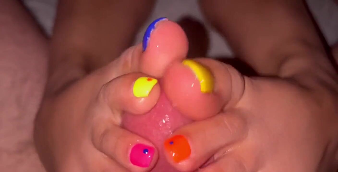 Sexy cute neon toes teasing a wet cock