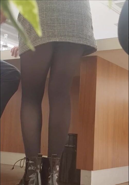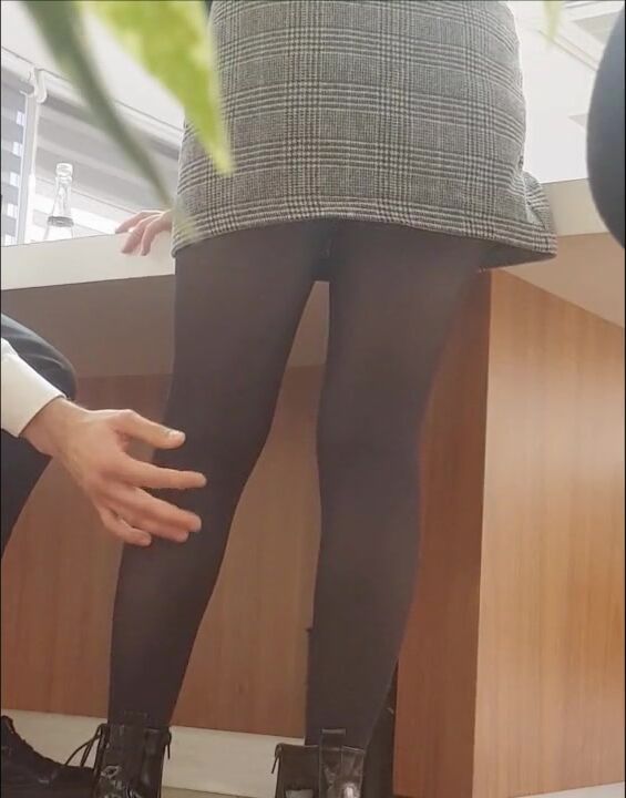 Sexy Secretary in Mini Skirt and Black Pantyhose+Groping