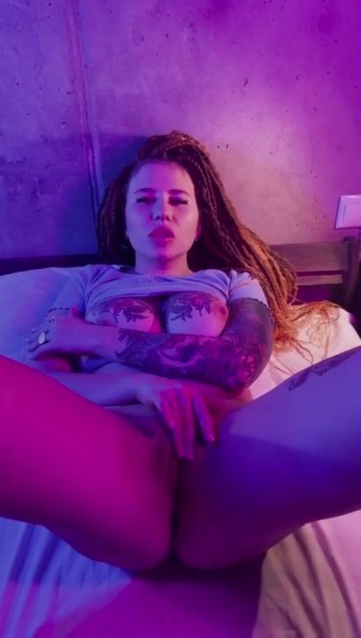 Tattooed slut fingers her pussy