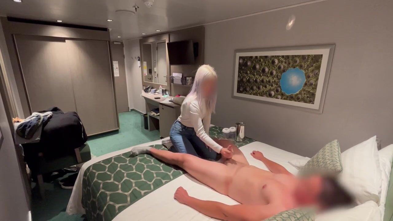The girl at the hotel reception brings me a soda and helps me finish cumming