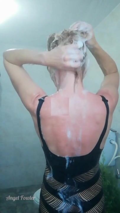Tik Tok Blonde Babe Takes Hot Shower in Wet Sexy Dress. Angel Fowler