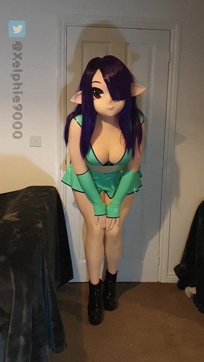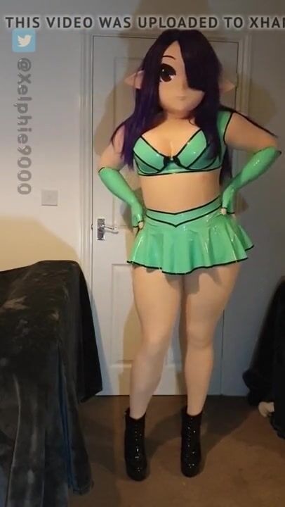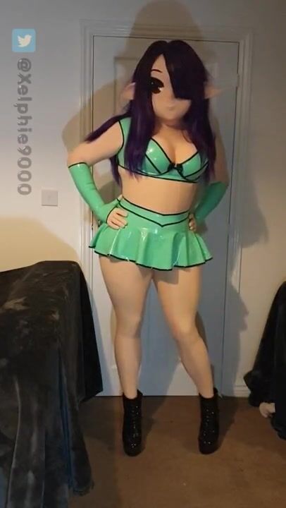 Xelphie in Green Latex Miniskirt and Top